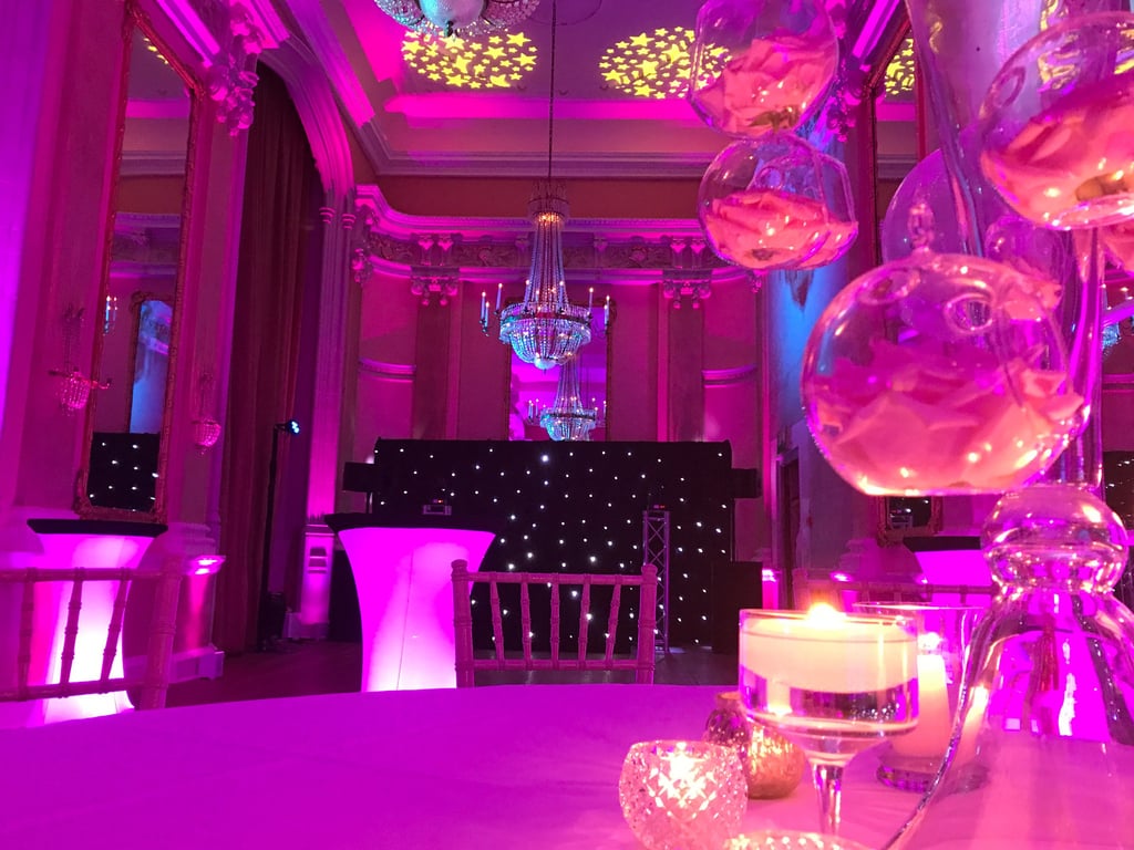Most Venues are just a blank canvas which doesn’t always create the right ambience and mood for your event. From elegant floral arches to our stunning LED Dancefloors, we bring your vision to life with care and creativity. We can use a mixture of Draping and Lighting which can really transforms a tired blank space into a completely different venue and really create the Wow factor you desire.