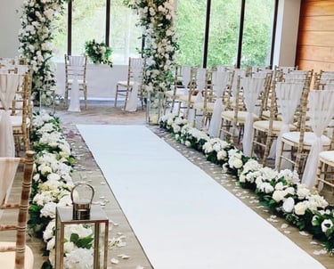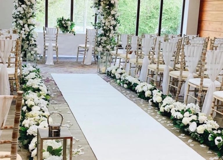 Aisle runners, florals, lanterns, petals and candles to decorative trees are a perfect way to line the aisle for your ceremony.
