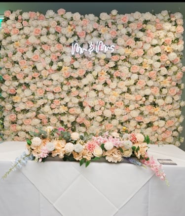 Stunning flower arch and flower walls are a beautiful way to add elegants to your ceremony or wedding breakfast
