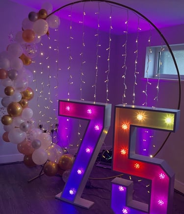 Lightup numbers and letters that can be on a static colour to match your theme to colour changing and patterns